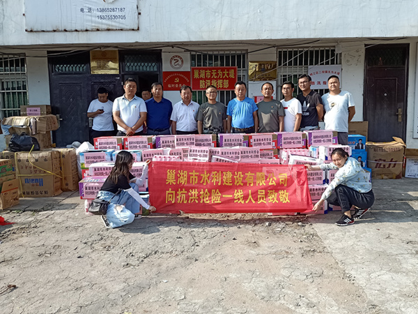 7月份以來,面對遭遇超強雨量、超高水位、超長時間的歷史罕見特大汛情,巢湖市水務(wù)局、應(yīng)急局的技術(shù)干部始終奮戰(zhàn)抗洪搶險一線,與時間賽跑、和洪水搏斗。我公司聞“汛”而動,親切慰問巢湖市在無為大堤防汛指揮部的一線技術(shù)人員及防汛工作人員,并送去了礦泉水、方便面、牛奶等慰問物資。
